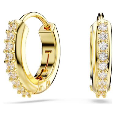 Ignite your style with these shimmering mini hoops. The pierced earrings are gold-tone plated and adorned with clear prong-set Zirconia on the outer section. An effortless way to infuse your look with instant radiance.