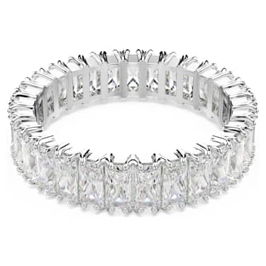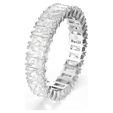 No jewelry collection is complete without a radiant band ring. This silver-tone finish design features a full surround of baguette-cut Zirconia, each placed within a refined prong setting. A sensational piece to wear solo or stacked with similarly dazzling rings from the Matrix family.