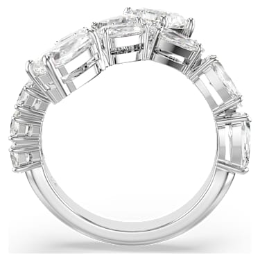 Sophistication shines brightly in this exquisite Matrix ring. The rhodium plated design is adorned with an array of clear Zirconia in pear and square cuts, featuring a gradient of sizes for an unexpected silhouette. Wear it alongside a matching Matrix cuff and enhance your inner light.