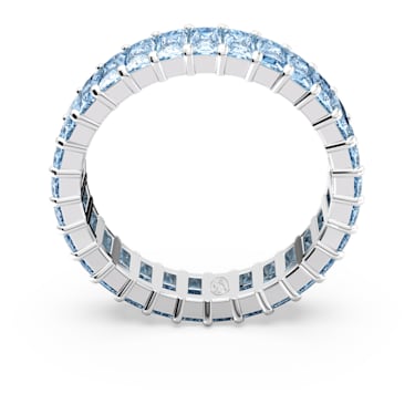 Catching the eye with its radiant aquamarine tone, this Matrix ring will make a beautiful addition to your jewelry box. In a process that unites science and magic, blue princess baguette-cut stones are set on a rhodium plated band. This shining accessory that is perfect for stacking, allowing multiple combinations for all occasions.