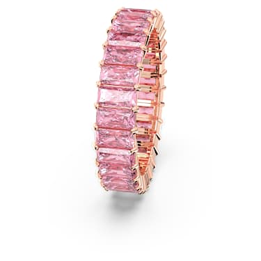 For just one small piece of jewelry, this Matrix ring packs a lot of incredible detail. The rose gold-tone plated setting is the perfect base for a circle of pink stones in a beautiful baguette princess cut. Each of the crystals is gracefully held in place with a prong setting, to deliver a gorgeous overall colorway. This elegant ring is designed for stacking your style, allowing multiple combinations for special occasions.