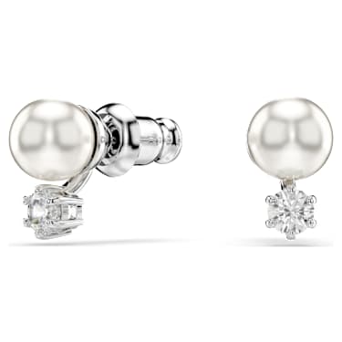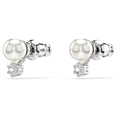 These stunning pierced studs are a fresh take on the classic pearl earring. Each rhodium plated piece features a single white Crystal Pearl and a round-cut Zirconia, linked in a refined display of light-filled luxury. Pair with a matching Matrix pendant for added radiance.