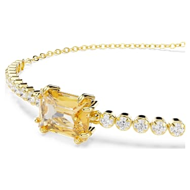 This classic Tennis bracelet adds a touch of radiance to any look. Fastened with a sliding closure for an adjustable fit, the gold-tone plated design features a uniform row of Zirconia and is accented with a baguette-cut caramel Zirconia at its center. A vibrant twist on a timeless style that you can wear time and time again.