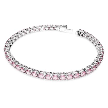 Enjoy the glimmer of rich color with this bracelet from the Matrix Tennis family. In perfectly formed fluidity, the design features a row of round purplish pink stones on a rhodium plated setting for a combination that is truly alluring. Wear it alone, or pair it with other pieces from the Matrix Tennis family.