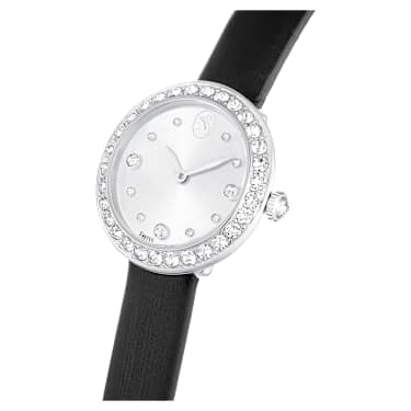 Echoing the iconic form of Matrix Tennis jewelry, this watch makes its own elegant impression with crystals. The 30-mm stainless steel design features a pavé of 30 clear crystals on the bezel, while the sunray dial is further accented with crystals for the hour markers and includes a swan logo at 12 o’clock. Around the wrist, comfort is provided by the black leather strap, which includes satin finishing and a quick-release system. This Swiss made watch is water resistant to 50 meters and is completed with a single crystal placed in the crown. Wear it alongside jewelry from the Matrix Tennis family for a seamless overall look.