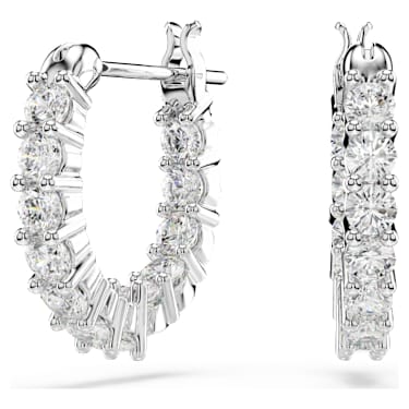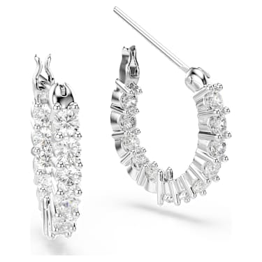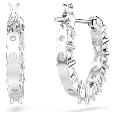 This pair of pierced earrings by is a delightful, timeless piece of jewelry. Both hoop earrings are set with numerous sparkling white stones that enhance their attractive look with subtle glimmer. Best worn with matching necklaces and bracelets, these earrings are a delightful gift for casual occasions.