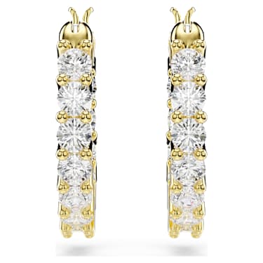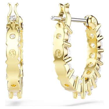 These pierced mini hoops by are a radiant and timeless piece of jewelry. Both earrings are gold-tone plated and decorated with numerous Zirconia that enhance their attractive look with subtle shimmer. Best worn with matching necklaces and bracelets, these earrings are a delightful gift for everyday wear.