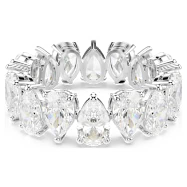 This ring by showcases the sparkling beauty of gleaming, faceted stones. White, drop-shaped elements arrayed in a single row beautifully reflect and refract incoming light. Its puristic, elegant forms make this ring perfect for combination with other pieces of jewelry and trendy stacking looks with matching rings. An excellent choice to enhance an outfit for special occasions, and a truly inspired gift giving idea.