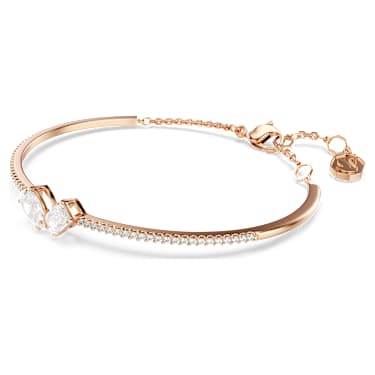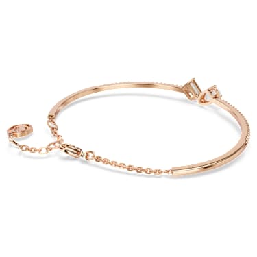 Surround your wrist in the elegant and dazzling style of Mesmera. This rose gold-tone plated bangle features a pavé of crystals on each side, combined with two Zirconia at the center in pear and octagon-step cuts. A radiant duo that catches the light from every angle. The bracelet features a hanging elongation and is a refined piece for celebratory occasions.