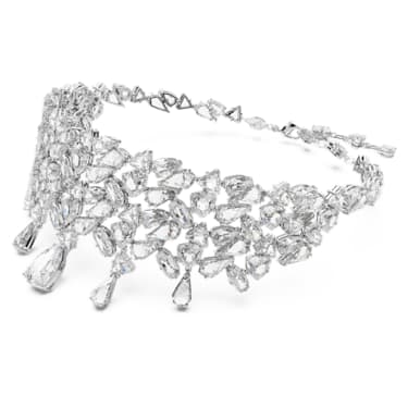 This dramatic Mesmera choker was created for iconic evening style. The light-catching design is made with a cluster of crystals in a surprising mix of cuts and sizes, and for extra luxury the integrated elongation is crafted with a scattering of stones. A striking gift for someone who loves to stand out.