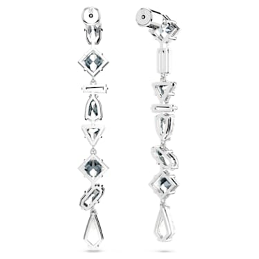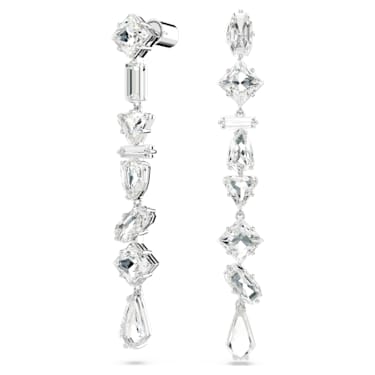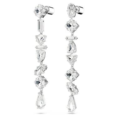 These radiant Mesmera earrings were crafted for extravagant style. Within each piece, the dazzling design features a cascade of prong-set crystals in a rhodium plated setting, with each stone crafted in a different shape. A wondrous mix of light-catching facets that make an elegant gift for a loved one.