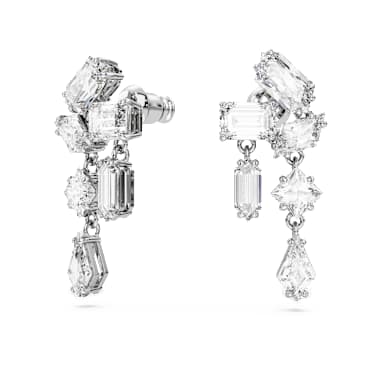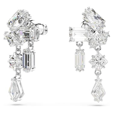 Add a cluster of beauty to any outfit with these stunning Mesmera earrings. Each pierced piece is rhodium plated and features a dramatic mix of stone cuts in a prong-setting. The short hanging style catches the light from every angle, making these earrings a perfect gift of radiance for a special occasion.
