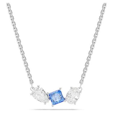 This elegant Mesmera pendant delivers exquisite refinement through its bold mix of cuts and color. Worn on a delicate chain, the rhodium plated design features a trio of prong-set Zirconia in varying shapes with a radiant blue central stone. A wondrous gift that will accentuate any style.