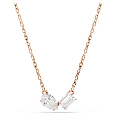 Create a look of overall elegance with this matching Mesmera pendant and earrings set. The eye-catching pieces are rose gold-tone plated and each feature a pair of prong-set Zirconia in pear and octagon-step cuts. Simple yet refined, this set makes a perfect gift for any special occasion.