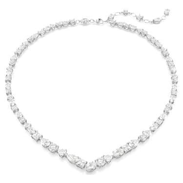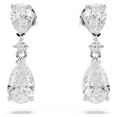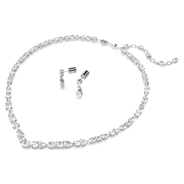Exquisite refinement is brought to life in this show-stopping jewelry set from the Mesmera family. The necklace is made with a string of eye-catching Zirconia on a rhodium plating setting, all produced in a surprising mix of cuts and sizes. For extra luxury, the elongation is completed with a lobster closure and a scattering of Zirconia. The light-catching earrings are also rhodium plated, with a bold hanging design featuring luminous pear-cut crystals. Gift this set to a loved one and instantly ignite their style.
