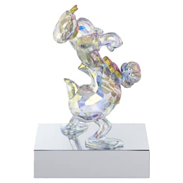 This radiant Donald Duck-inspired figurine is a mesmerizing example of savoir-faire. Showing Donald in a dynamic pose cut with 609 facets, it has a reflective platinum sheen created with an all-over coating of our signature Aurora Borealis effect for increased shimmer and intensity. Featuring a metallic base with a chrome finish and black velvet bottom, the figurine can also be removed from the base and placed anywhere in your home. A playful piece that beautifully celebrates one of the world’s most beloved animated characters. Decoration object. Not a toy. Not suitable for children under 15.
