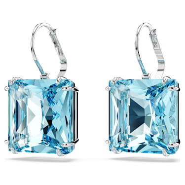 Bold yet refined, these pierced earrings are a timeless everyday choice. Featuring square cut crystals in a calming blue hue, this pair is finished with a sleek rhodium plated setting. Style yours with denim or sharp tailoring – with this versatile design, anything goes. These earrings are part of the Millenia Family, designed for Collection III.