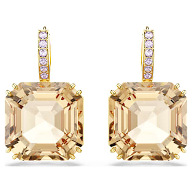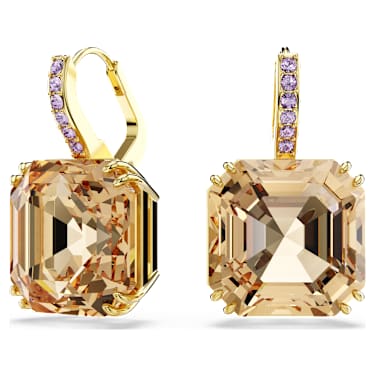 Give shape to your style with these asscher-cut earrings in a warm hue. Each refined piece is gold-tone plated and is double prong-set with crystals in a caramel colour. The purple pavé detailing also injects extra radiance on the bail. Wear these earrings to energize any outfit and combine them with matching pieces from the same family to maximize your glow.