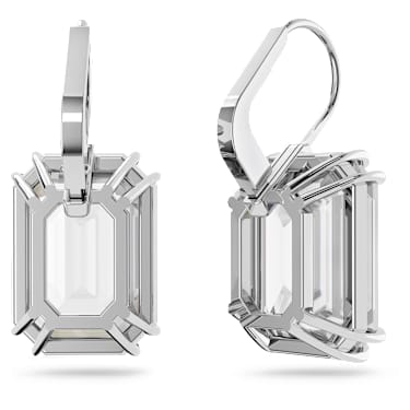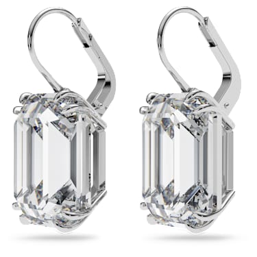 These elegant earrings will make a timeless addition to your everyday wardrobe. Designed with octagon cut crystals in a versatile white hue, this pair is finished with a sleek rhodium plated setting. Style yours with other pieces from the Millenia family for maximum impact. These earrings are part of the Millenia family, designed for Collection III.