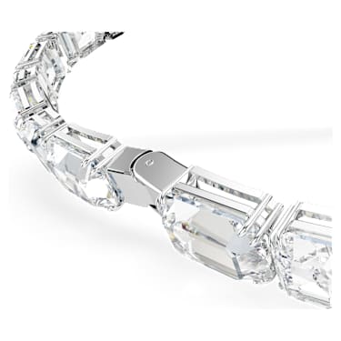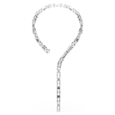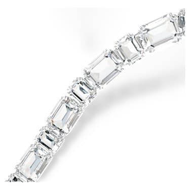 Embrace the sheer beauty of crystals in this light-filled Millenia necklace. The rhodium plated design wraps around the neck with a circle of octagon-cut clear crystals, and then dips at the middle with a long and luminous strand. Wear this necklace every day to instantly elevate any outfit with joy.