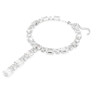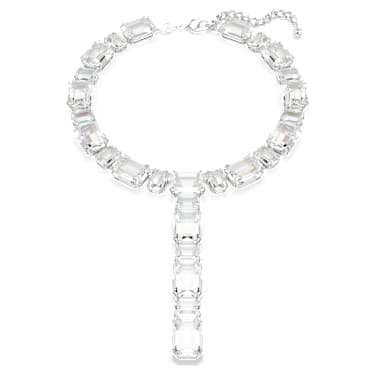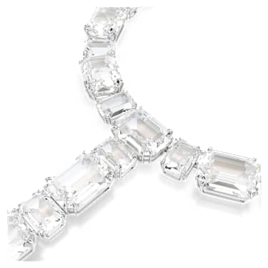 Radiate wonder with this t-shape necklace from the Millenia family. The rhodium plated design features an all-around row of clear crystals, presented in various shapes and sizes, and with a long strand at the front. It’s a superb way to elevate the light and joy in your style. Combine this necklace with some matching Millenia earrings to complete the powerful look.