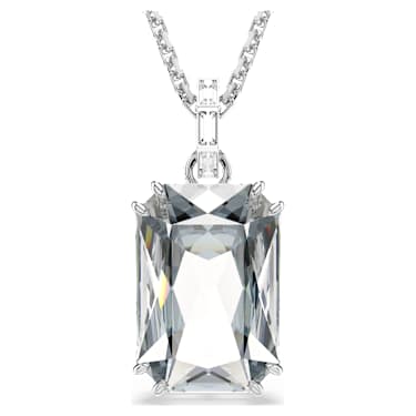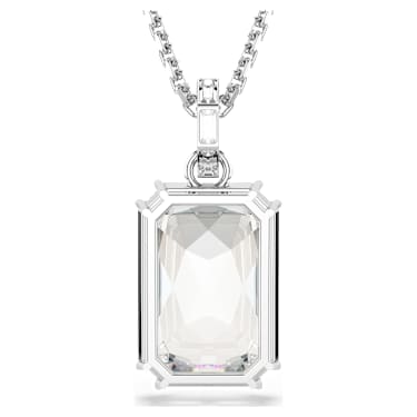 With emblematic Millenia style, this luminous pendant is a pure creation of light. The central motif is crafted from a large clear crystal in a double prong setting and connects to the rhodium plated chain via an elegant bail adorned in channel-set crystals. A mesmerizing choice to elevate your everyday glow.
