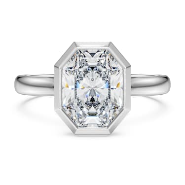 Conveying the signature octagon shape of, this solitaire ring glows with sophistication. The 14K white gold band features a single laboratory grown diamond, totaling 2.0 carat, placed in a faceted bezel setting. Precision cut for maximum radiance, this ring is a wonderful choice for an engagement. This jewelry is IGI (International Gemological Institute) certified and is part of the Octagon collection.