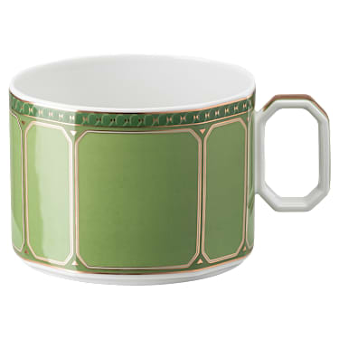 Crafted from porcelain, this cup and saucer is inspired by the Wiener Werkstätte art scene. The saucer is decorated with’s signature octagon in gold tone and the cup features an artful octagonal handle. Serve it solo for quiet moments, or in a set to entertain guests. This cup and saucer is part of an exclusive collaboration with porcelain brand Rosenthal. It is dishwasher safe, however usage in the microwave is not recommended.
