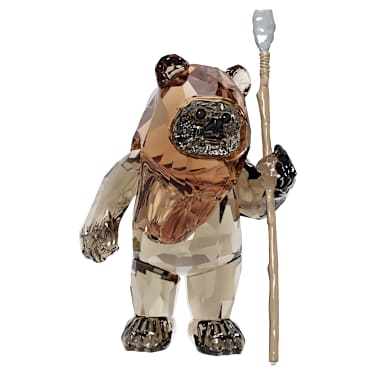 Part of our Star Wars collection, this sparkling design depicts Wicket, the young inquisitive Ewok scout from the forest moon of Endor. It features a total of 349 facets, which shimmer in black and brown crystal and gray lacquered metal. A must for collectors. Decoration object. Not a toy. Not suitable for children under 15.