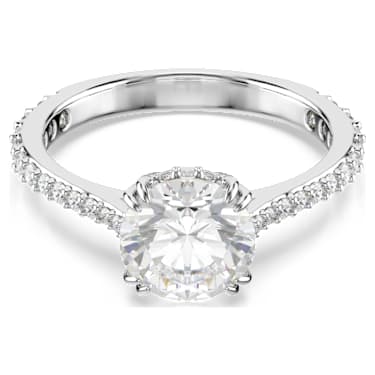 Proving there is power in simplicity, this Stilla ring is a wardrobe essential. Expertly crafted, the scene-stealing princess-cut center stone is enhanced with elegant pavé on the gallery and along the rhodium plated band. Wear it solo and shine bright.