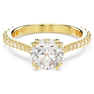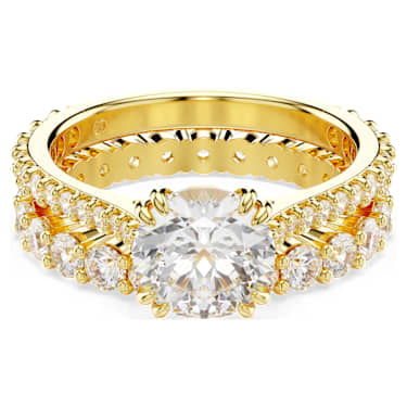 Reflecting the beauty of the cosmos, this spectacular jewelry inhabits its own light-filled universe. The gold-tone plated design combines a band ring adorned in pavé with a solitaire ring, also featuring pavé, with a large Zirconia at the center. A radiant gift that beautifully captures signature savoir-faire.