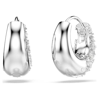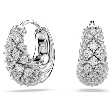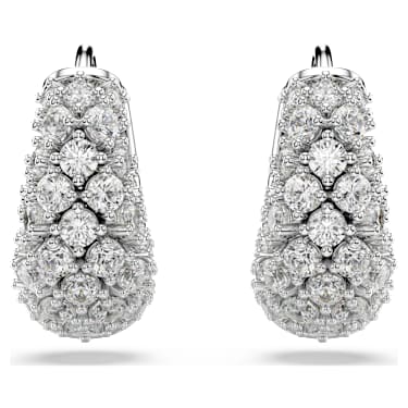 Delicate yet radiant, these shimmering earrings are rhodium plated and feature a stunning decoration of clear Zirconia, set in place using the chatonnage technique. An additional spring plate mechanism makes them particularly easy to wear. Combine these earrings with a wondrous Sublima pendant or a ring to infuse your entire look with light.
