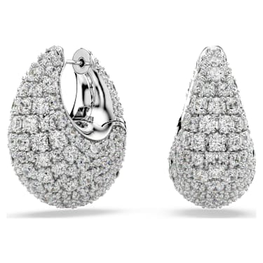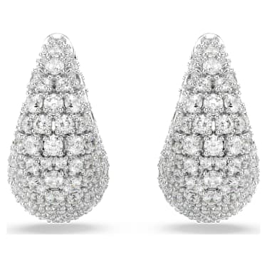 Crafted in the shape of two shimmering droplets, these large earrings are a glamorous choice for personal styling. Each rhodium plated silhouette features a stunning decoration of clear Zirconia, set in place using the chatonnage technique. An additional spring plate mechanism makes these earrings particularly easy to wear. Combine them with a wondrous Sublima pendant or a ring to infuse your entire look with light.