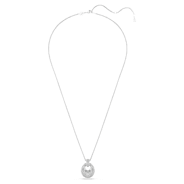 This shimmering pendant is the ideal choice for glamorous occasions. The central motif is suspended from a long rhodium plated chain and features a stunning decoration of clear Zirconia, set in place using the chattonage technique. Combine it with a pair of wondrous Sublima earrings or a ring to infuse your entire look with light.