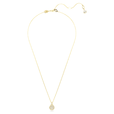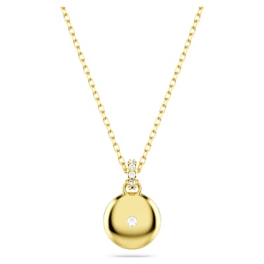 This galaxy-inspired pendant will bring dazzling impact to any style. The gold-tone plated design is worn on a delicate chain with a lobster closure and features a domed meteor motif that is beautifully adorned with a snow pavé of clear round crystals in different sizes. Wear it as a wondrous piece of light-catching joy.
