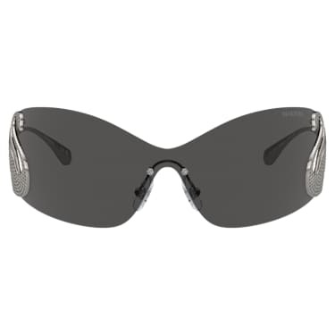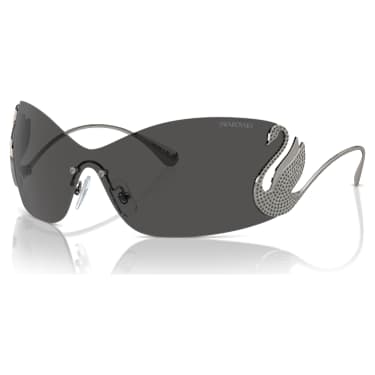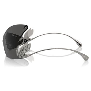 These signature sunglasses are inspired by the iconic swan – representing love, joy, and eternal beauty. The extraordinary design features gray lenses in a mask shape, along with a gunmetal swan silhouette on each temple, elegantly curved and embellished with a snowflake pavé of black crystals. A graceful way to celebrate most famous emblem.