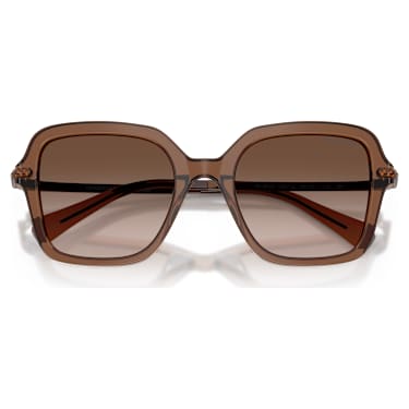 These sunglasses take inspiration from the geometric silhouettes of the Dextera jewelry family. The large square frames are transparent brown, and are matched by brown lenses with a striking gradient effect. For extra refinement, a pavé setting of crystals is placed along each temple. A sleek and modern look for the brightest days.