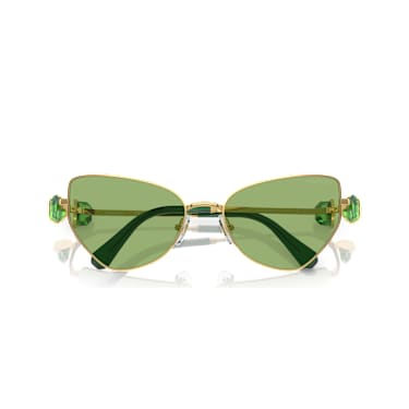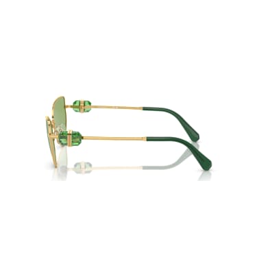 These distinctive cat-eye sunglasses have been designed for extravagant style. The gold-tone metallic frames are contrasted with deep green lenses and hinged octagon-cut green crystals on each temple. This design is inspired by our bold Lucent family and will ignite your look every time you step outside.