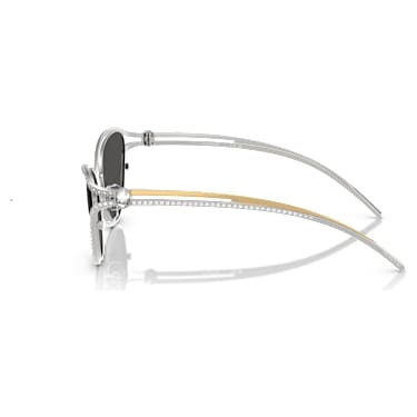 Inspired by luxurious Hyperbola jewelry, these hypnotic sunglasses are made with shape and radiance in mind. The bicolor frames are crafted from silver- and gold-tone metal, with a silhouette that forms an elegant infinity symbol. Along with dark gray lenses, there is a single crystal placed on each of the hidden hinges, while the temples are vividly adorned with smaller clear crystals. Combine with your favorite pieces of matching Hyperbola jewelry and prepare to shine bright all day long.