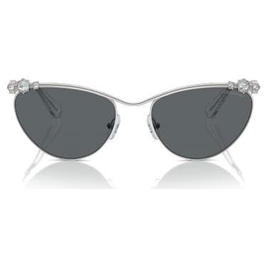 These eye-catching sunglasses are inspired by Constella family and combine classic elegance with extraordinary shine. Prong-set clear crystals in a variety of sizes adorn curved silver-tone metal temples, while the dark gray lenses are placed in a semi-rim frame. A striking way to add a touch of glamour to your everyday look.