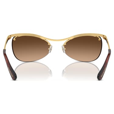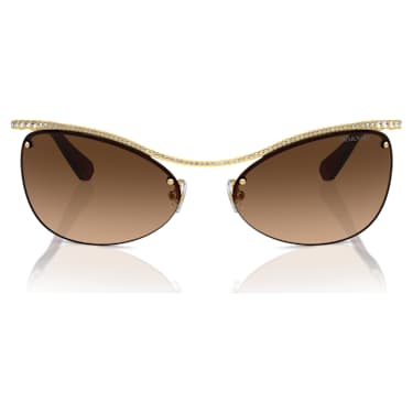 These Matrix-inspired sunglasses are an effortless way to modernize your style. The distinctive shape is crafted from gold-tone frames and floating brown gradient lenses, while the temples and brow bar are fully adorned with a variety of clear round crystals. A radiant everyday choice that will shimmer in the sun.