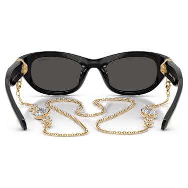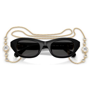 This expressive pair of sunglasses combines innovation with signature style. Inspired by the Millenia jewelry family, the black frames feature an exclusive hinge on each side, set with two clear octagonal crystals. The solid dark gray lenses are then presented in a sleek pillow shape for ultra-modern glamour.