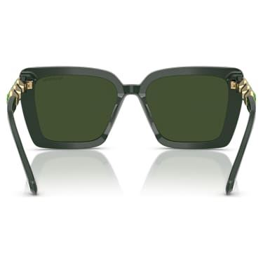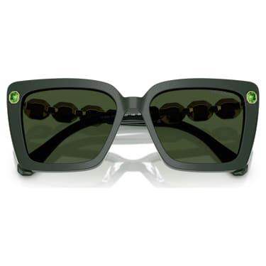 Make a statement with your style thanks to these charismatic sunglasses. Inspired by our iconic Millenia family, the elegant square frames are crafted from dark green acetate with matching lenses. On each temple, three peridot-green crystals are placed within a refined metallic bezel setting to form signature octagon shape. A confidently chic look that epitomizes pop luxury.