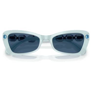 Dial up the color in your everyday style with these beautifully bright sunglasses. Inspired by our iconic Millenia family, the narrow butterfly frames are crafted from light blue acetate and feature matching solid blue lenses. On each temple, three exclusive crystals are placed within a refined metallic bezel setting to form signature octagon shape. Wear this pair to radiate joy, come rain or shine.