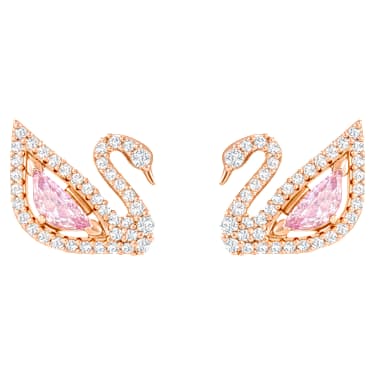 Enjoy multiple looks with this dazzling pair of versatile long-length pierced earrings. The iconic swan motif shines with a full-cut crystal body in cool millennial pink and crisp clear pavé lines. Wear as simple studs, or attach one, or both, of the delicate rose gold-plated chains for more statement style. A dainty design that will undoubtedly add cool and romantic style to your everyday collection. Matching items are available.