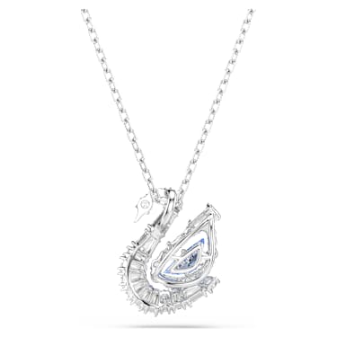 This pendant conveys the graceful movement of iconic swan. Suspended from a rhodium plated chain, the central motif reveals an elegant silhouette, adorned in clear Zirconia and with a blue dancing stone in a swan body cut. This radiant detail creates an endless motion of color and light, and will keep your style shining at every moment.