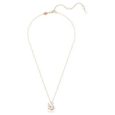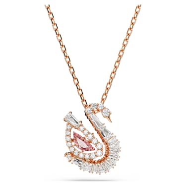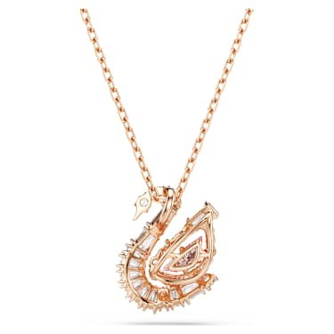 This pendant conveys the graceful movement of iconic swan. Suspended from a rose gold-tone plated chain, the central motif reveals an elegant silhouette, adorned in clear Zirconia and with a pink dancing stone in a swan body cut. This radiant detail creates an endless motion of color and light, and will keep your style shining at every moment.