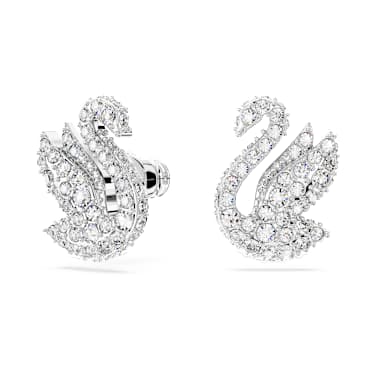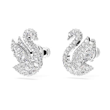 The iconic Swan has been gracefully brought to life in this pair of stud earrings. Designed with wings aloft, ready to take flight, the swan is embellished with an all-over pavé of shimmering clear crystals on shining rhodium plating. Choose this style for a delicate dose of daily inspiration.