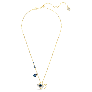 This mystical Symbolica pendant is designed to offer both protection and style. It features a domed evil eye motif in blue, black, and clear crystal pavé, and another in gold-tone plating. Around the neck, the beaded chain is adorned with dark blue crystals in round and pear cuts. Wear this piece to enter each day with confidence.