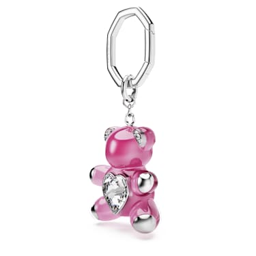 For a colorful dose of joy, this playful teddy key ring is crafted in lightweight pink resin with an octagonal link in rhodium plating. At its center, a clear crystal heart injects additional radiance and romance. Gift this key ring to someone you adore for a very special occasion.